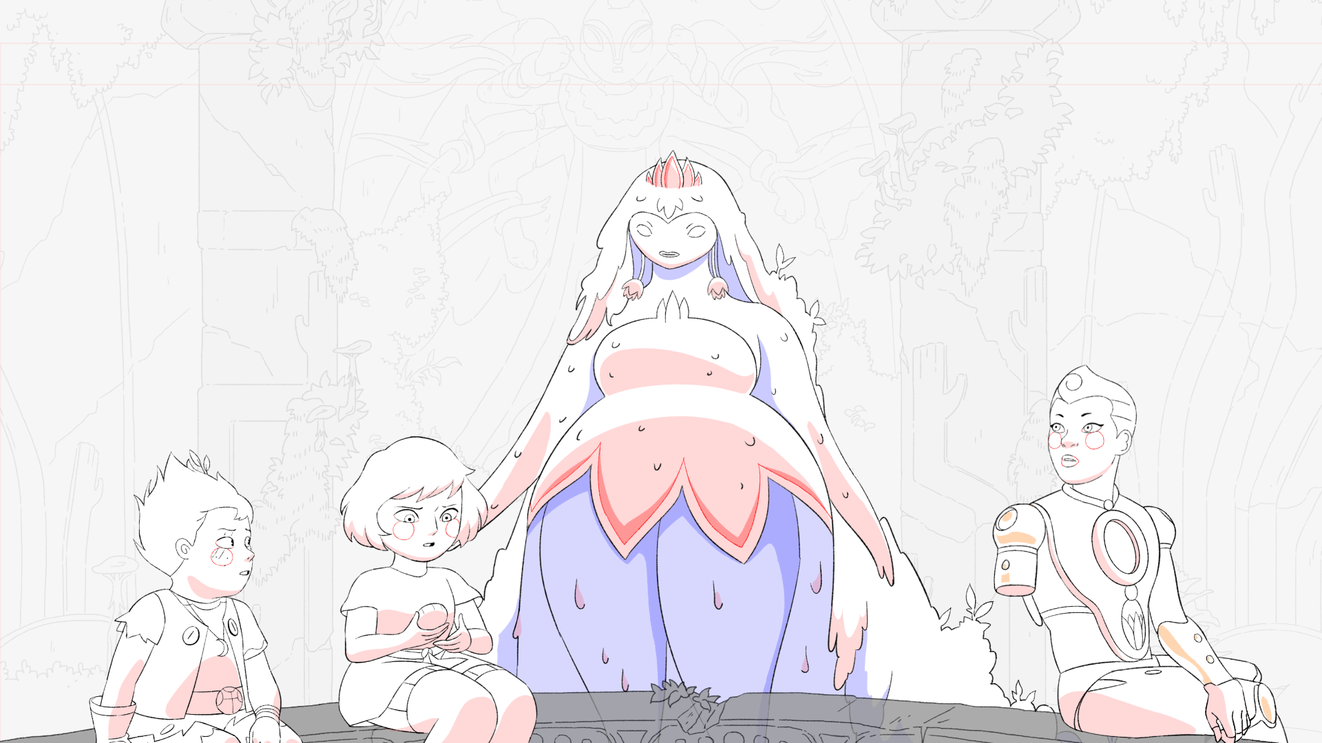 The animated adaptation also aimed to further develop an already rich visual universe. With the intention of intensifying the dramatic impact of the scenes, we focused on enhancing the level of detail in the environments, strengthening the lighting atmospheres, and carefully animating the iconic characters from the early volumes, so that fans could reconnect with their favorite characters.